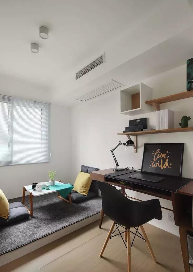 ▲書房打造了一個低矮的榻榻米,平??梢栽谶@里喝茶聊天,工作忙碌時也可以在家加班。