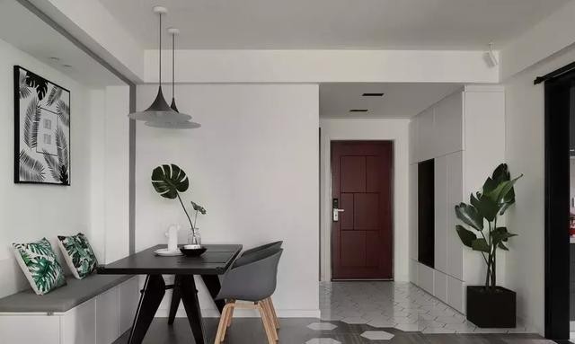 ▲入戶玄關設計很簡約,以一面收納柜開啟家的新篇章。往里就是餐廳,綠意濃濃。