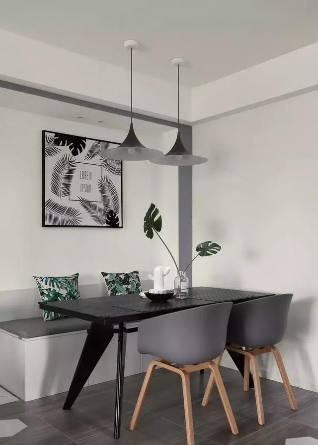 ▲簡約的小餐廳,黑白灰搭配得超大氣??ㄗO計+北歐風裝飾畫,格外清新。
