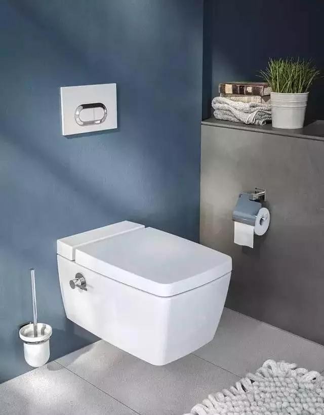 首先比較美觀,隱蔽水箱藏進假墻中,只留馬桶在外,可謂"天衣無縫",形式感極強;其次,馬桶和地面沒有關聯,不存在衛生死角,方便清潔;最后,還可以適當移位,改變整體空間布局。不過價格也略高一些,因為除了馬桶本身,還得另配水箱和水箱支架。而且設計時的工序更復雜一些。