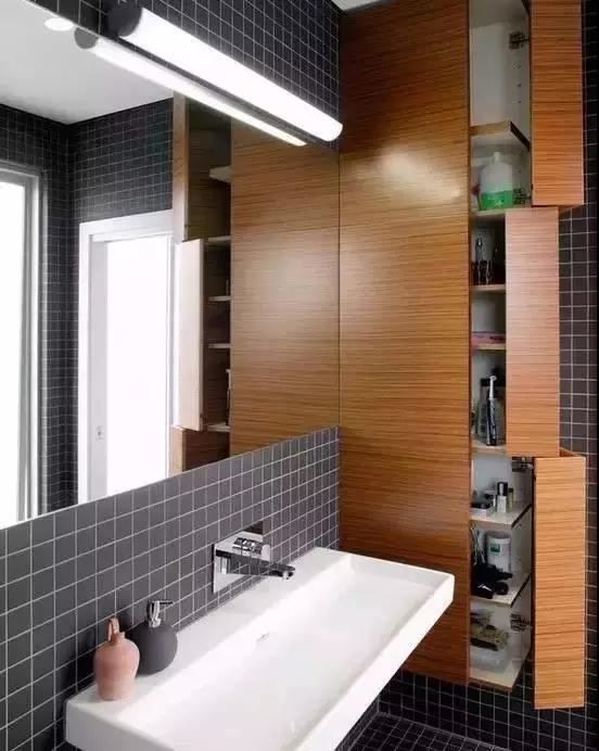 這個應該是少有人想到的,鏡子背后也能收納物品,不僅如此,還非常的方便,一物兩用??梢宰畲蟪潭鹊睦每臻g面積,把經常取用又容易造成空間雜亂的物品收藏在鏡子后面,能讓洗手臺變得干凈清爽。相當于鏡子后面定制置物架,不過更美觀、省事。